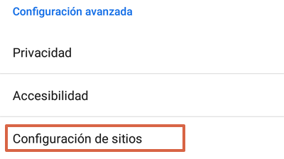 - En “Configuración avanzada” pulsa sobre “Configuración de sitios”.
